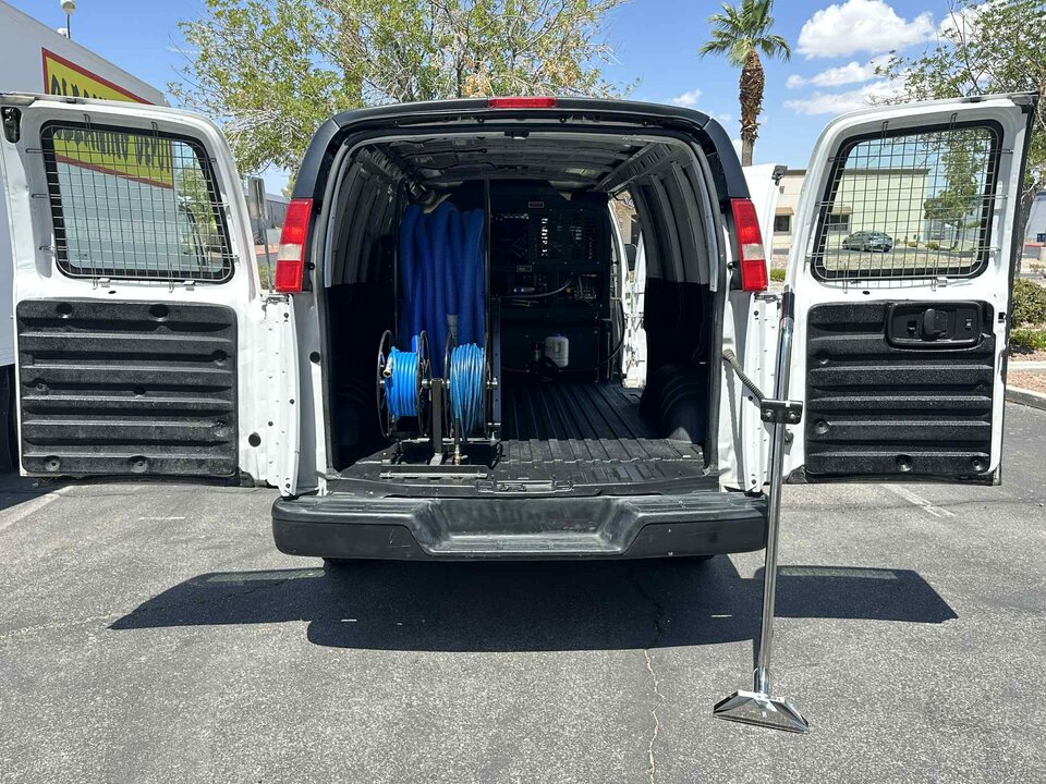 This is a dream carpet cleaning van, very low miles on pristine cargo 2018 Chevy 2500 EXTENDED van along with the brand new truckmount by Hydramaster, Titan 325. A great midsize unit for all your cleaning needs, from carpet, tile or upholstery in residential or commercial settings. Van title is clean, just 75k miles, EXCELLENT CONDITION, inside and out. LIKE NEW Body & mechanical, always UP TO DATE WITH OIL CHANGES, absolutely no rust. FULLY LOADED with power windows, power locks, rear view camera, alarm system , cabin steel divider, bed liner!PACKAGE INCLUDES LOTS OF ACCESSORIES NEW: