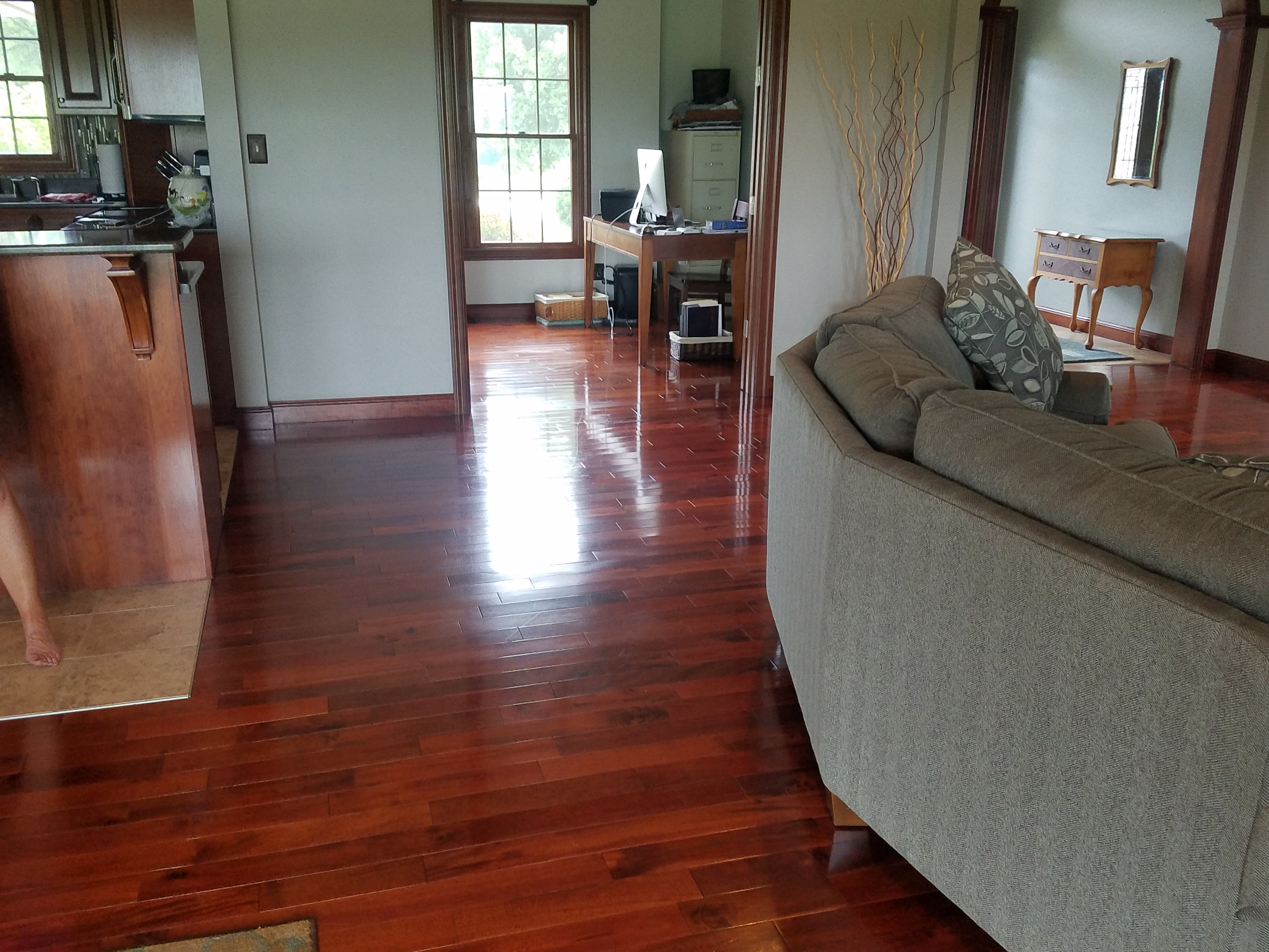 There is a company here that can strip and recoat that whole floor in a day and it's dustless.
