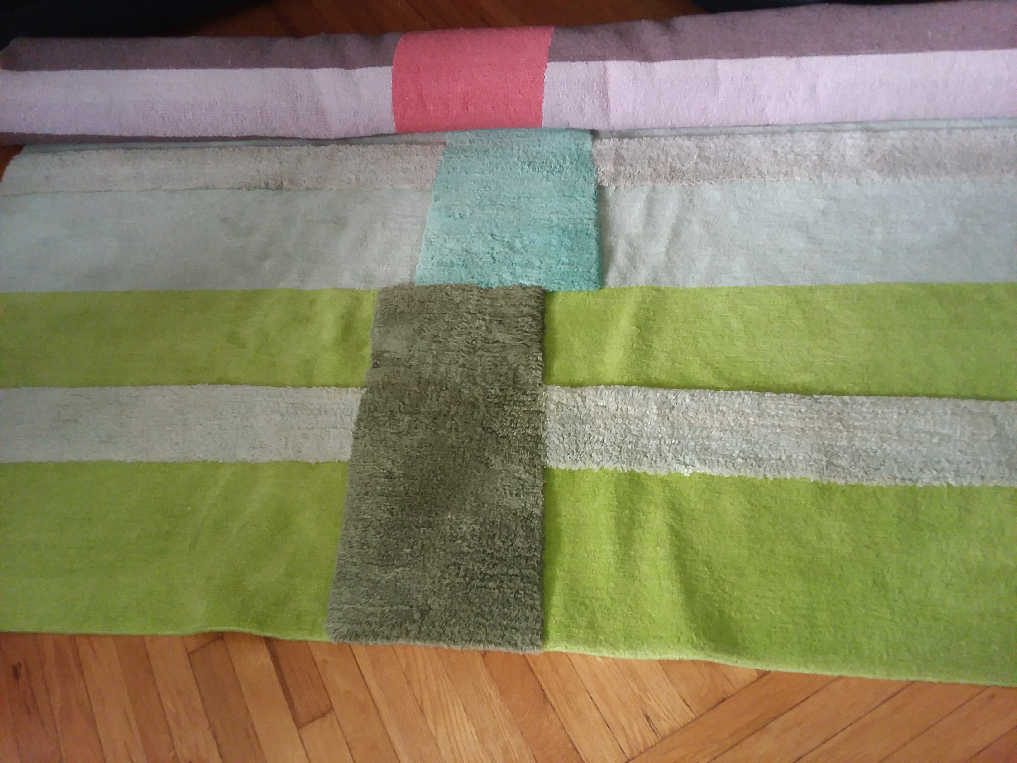 So we have a difficult situation, we cleaned a 7 year old custom hand knotted rug and when we returned it to the customer she went ballistic and said we ruined her rug. Our techs only rolled it out about a foot when she blew up so I think she made up her mind that it was ruined before we even brought it back. Of course her husband is a lawyer and she is an interior designer that has impeccable vision. This is a nice rug that only went through a normal wet cleaning process and didn't show any signs of bleeding or loosing color during the cleaning process. I honestly don't think there is anything wrong with the rug so I'm posting the before and after pictures to see if anyone sees something that I don't see.