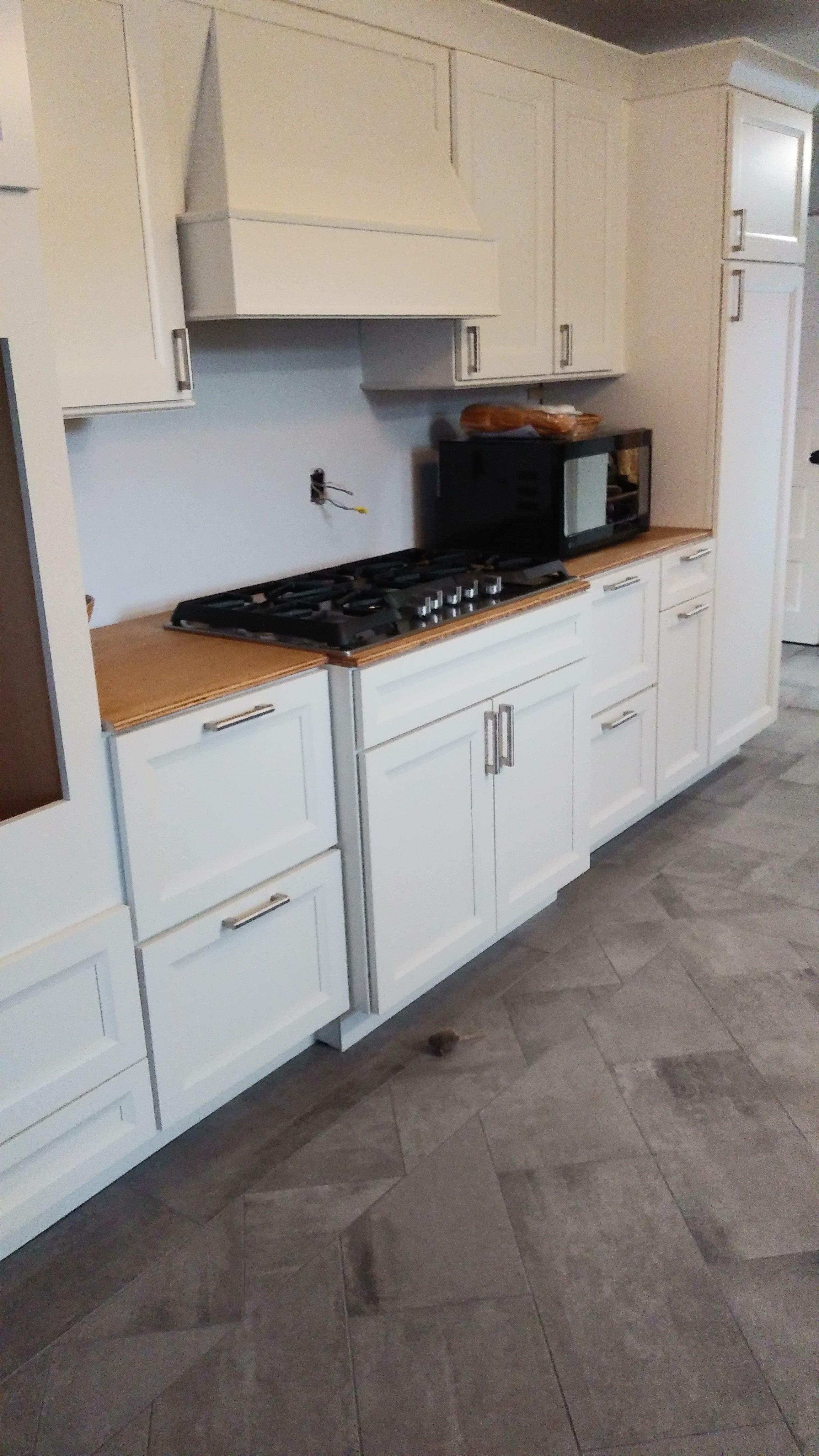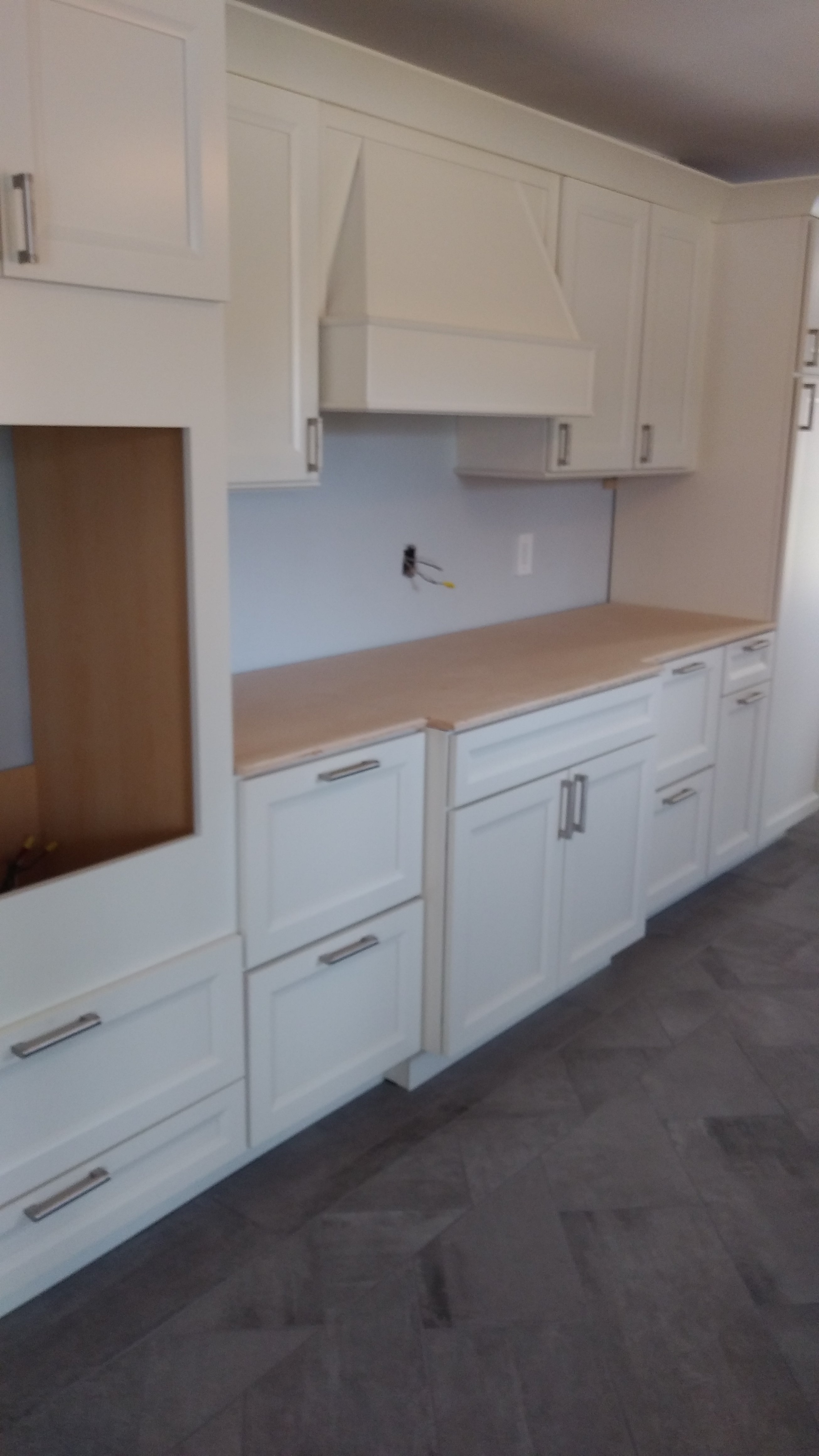 Was told our counter tops were delayed indefinitely but then got another call that they will be in by the end of month. I got some plywood and made counter tops yesterday so we can have a sink and stove too. Going to hook everything up today I hope. Be nice to be able to cook on the stove and run the dishwasher again.