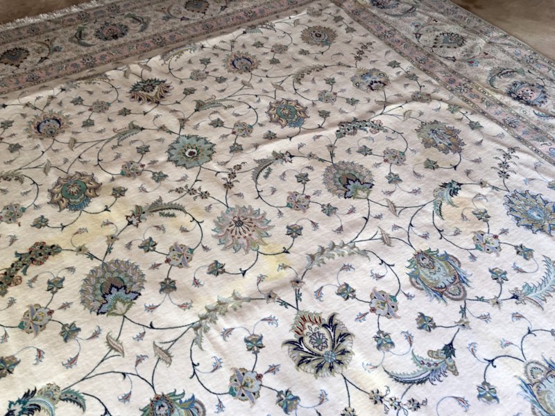 If you need a recommendation for someone in your area who you can outsource color correction jobs to, let me know. I'll be happy to help you. I have a world-wide network of individuals that I've trained in the art of airbrushing rugs. The dyes are completely permanent. Rugs that have been repaired/restored can be washed with any method without fear of bleeding or color loss.