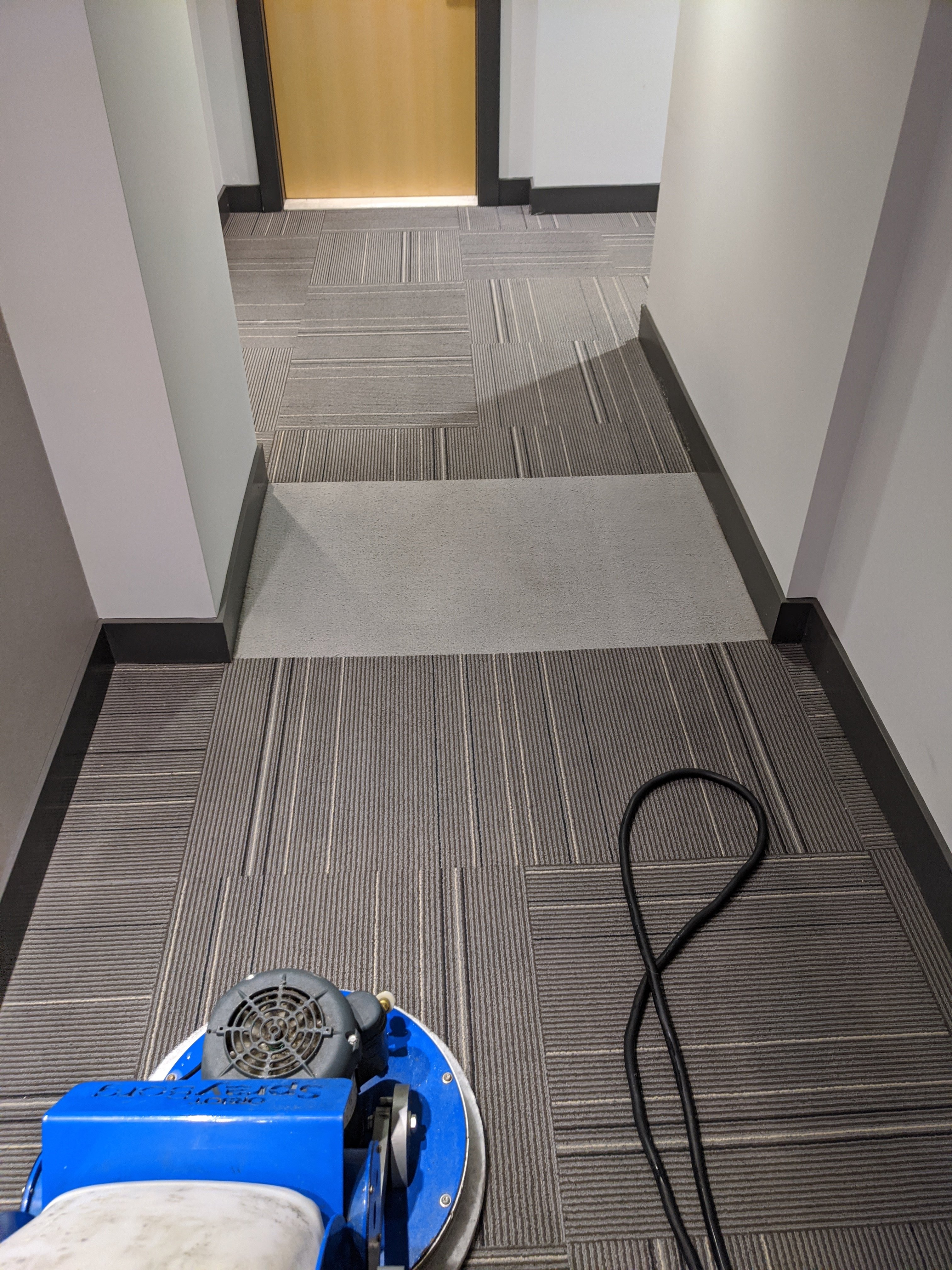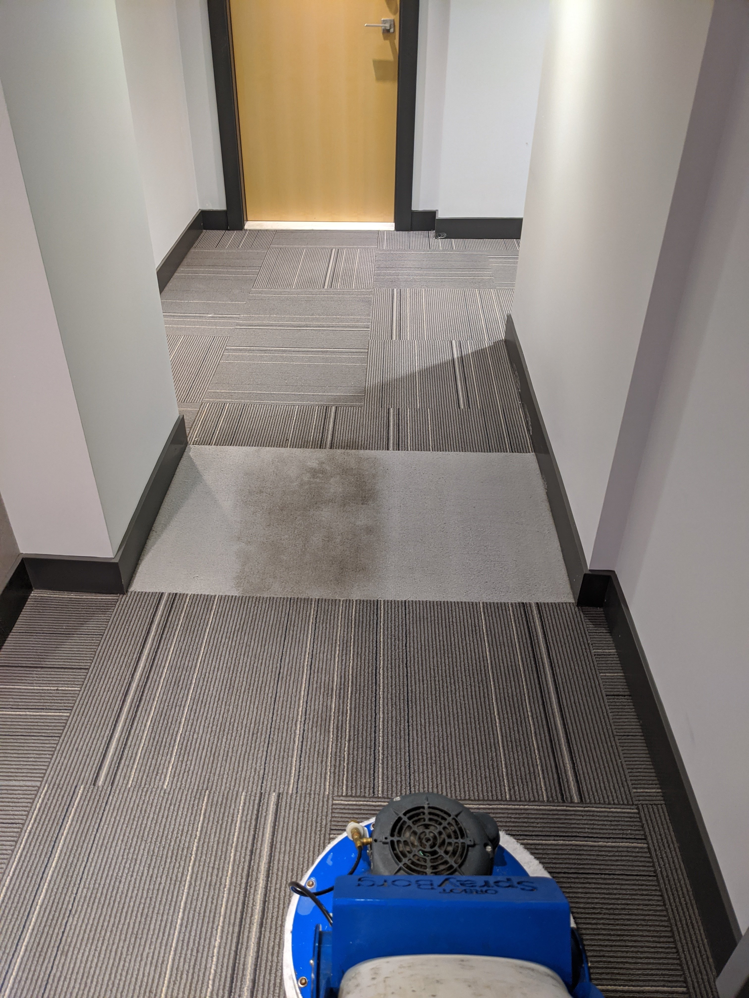 Doing a shared job with another company. 18 floor high rise. Did 11 floors before noon for $800. My share. The other guy did 7 floors. I using my sprayborg, he's using the Cimex. Hallways were heavily soiled but came up great.
