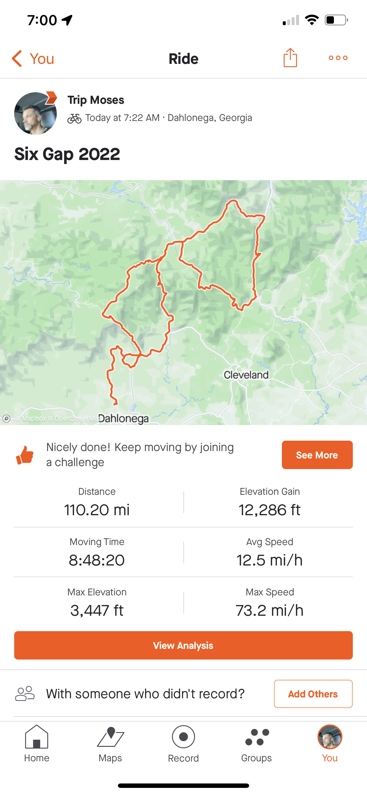 104 miles on a road bike regardless of speed, elevation gain or time completed is impressive no matter what.