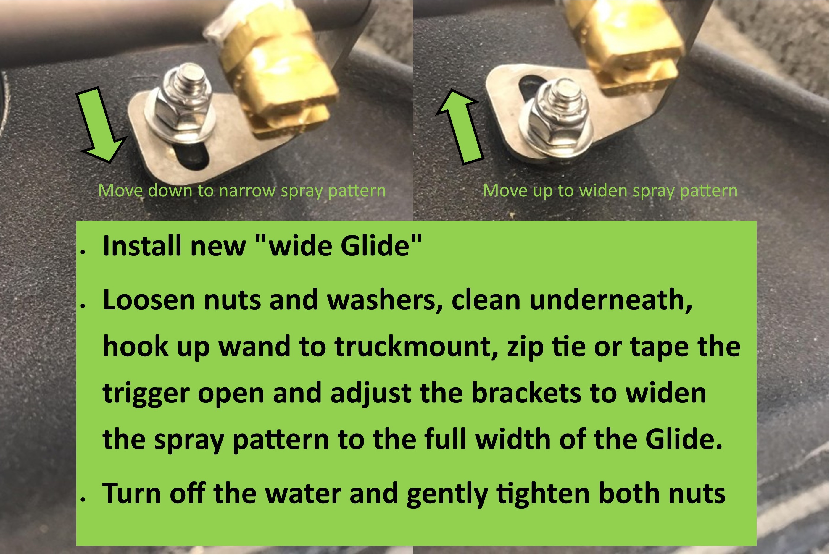 With the new GreenGlides "Wide Glide" and some adjustments made to your spray pattern you can now clean all the way to the baseboard!