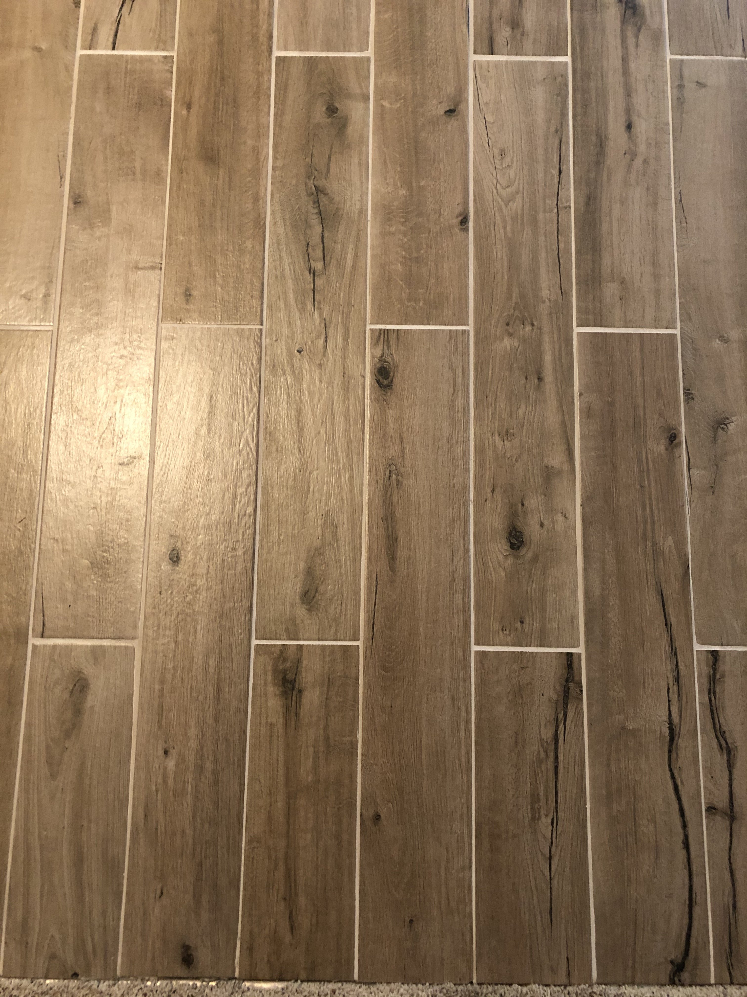 But its not supposed to look light brown. It wasn't light brown when we applied it, it looked like the color on the bag.Is because the floor contrast probably. If you had white tiles it would probably look light brown.