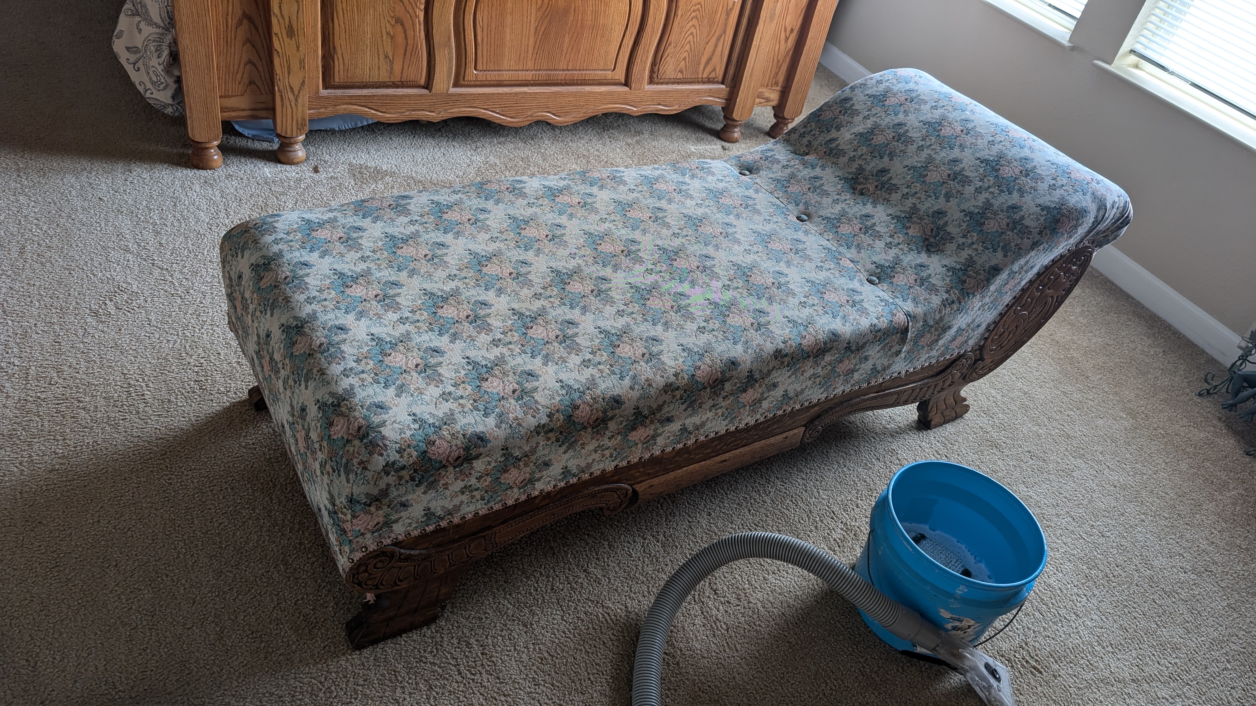 I quoted this lady 480 to clean this "fainting" settee and a few more modern pieces..