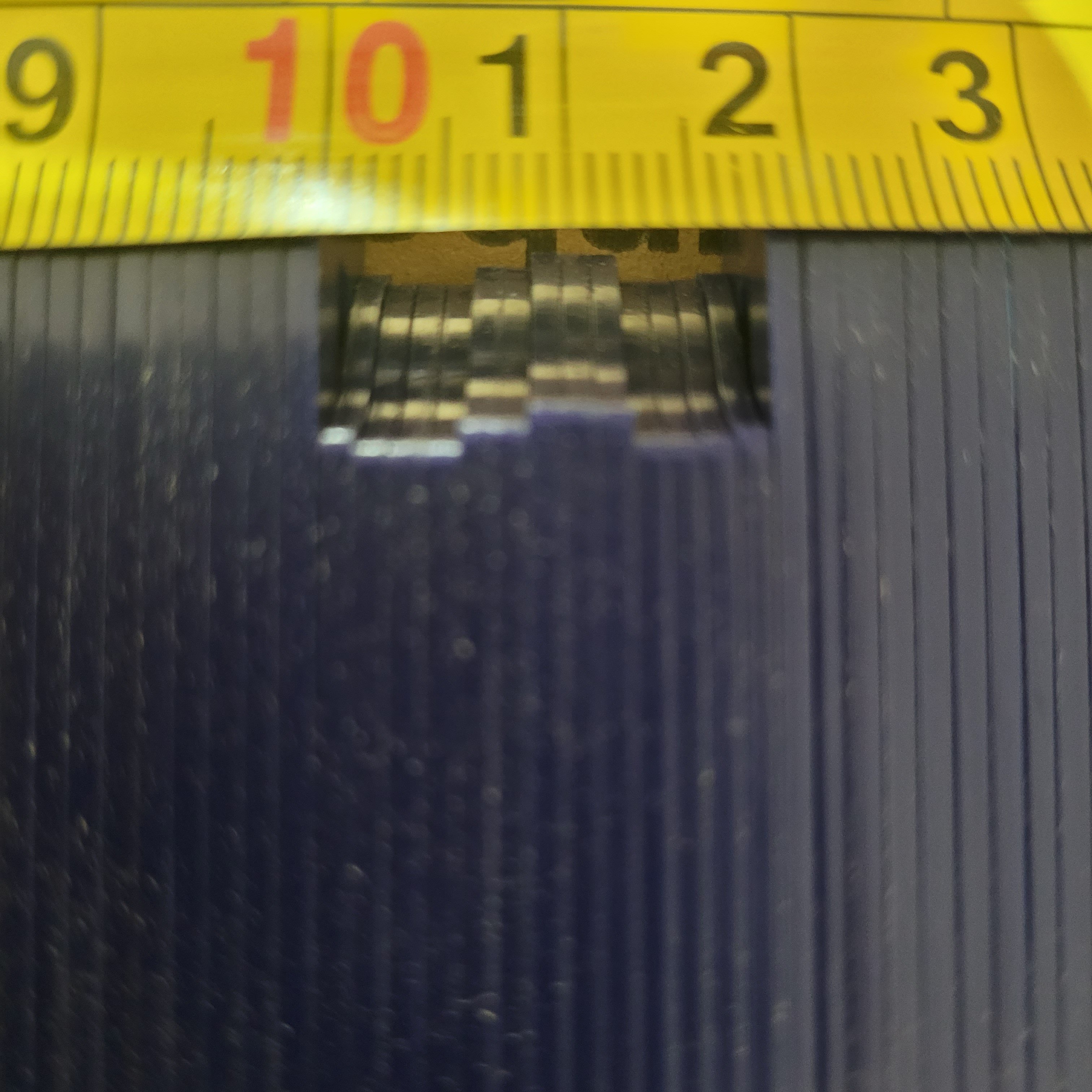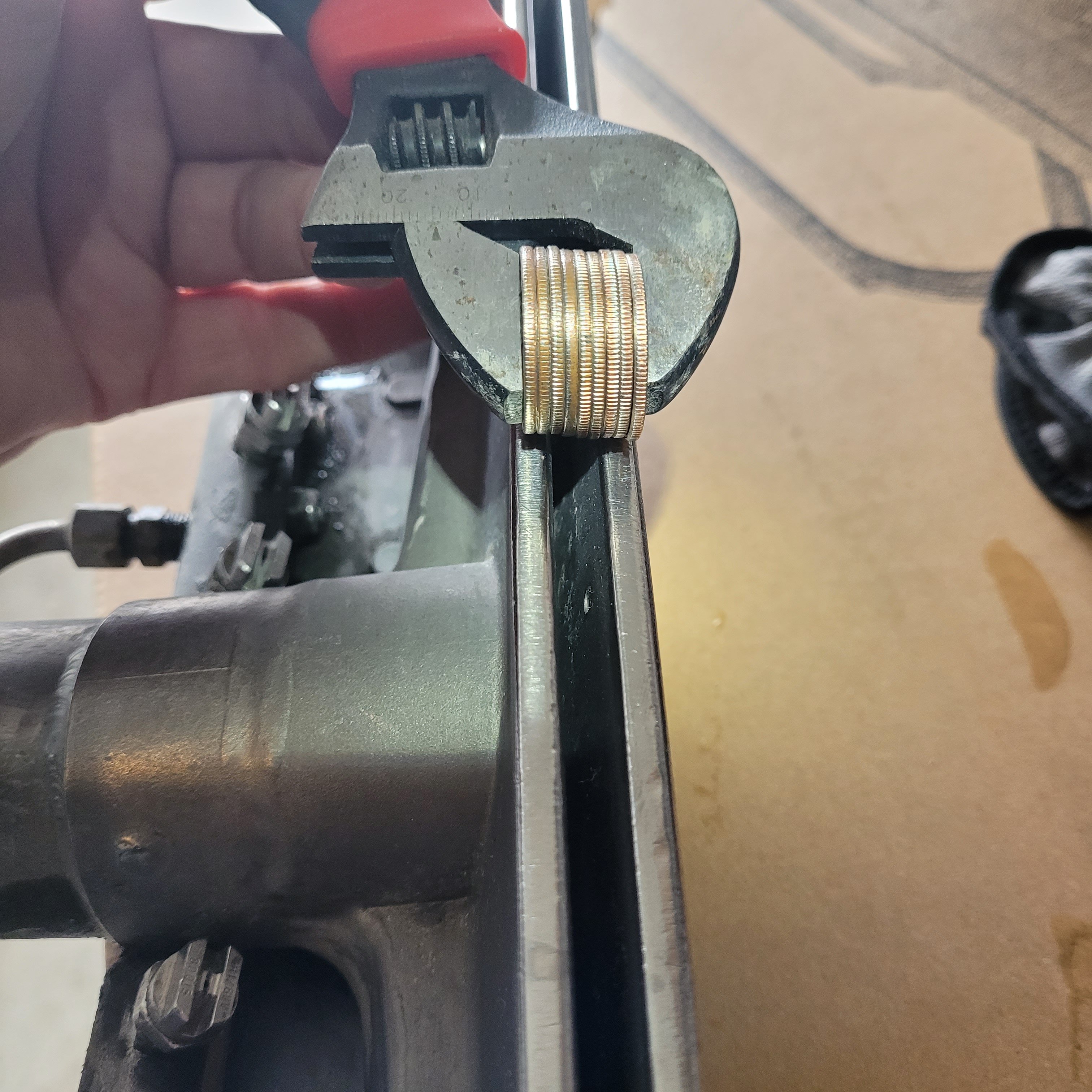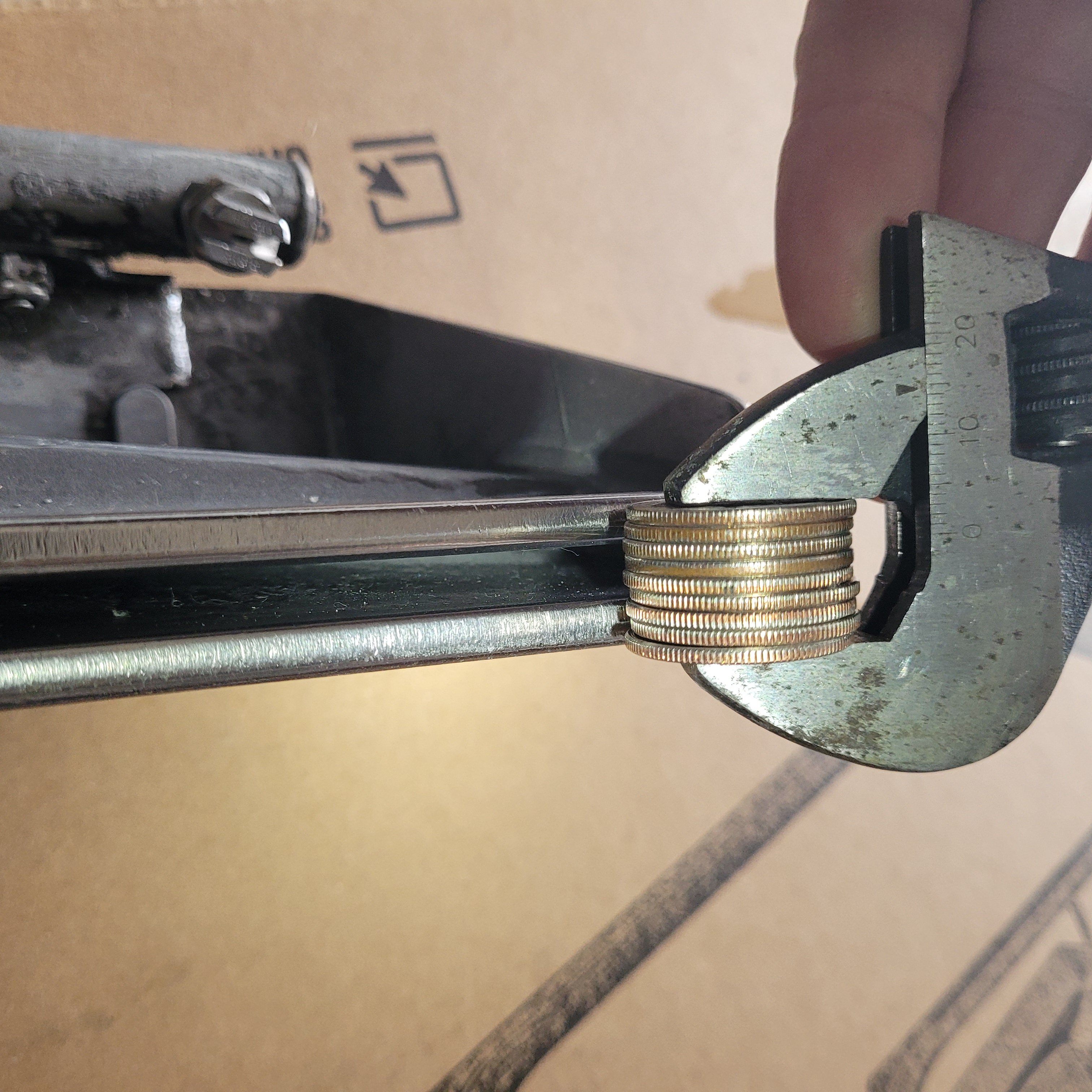 I figured that nine quarters measure precisely 15 mm. My slot( outside to outside ) measures 17.5 mm, except in the center, where the mouth is slightly wider, 17.7 mm.