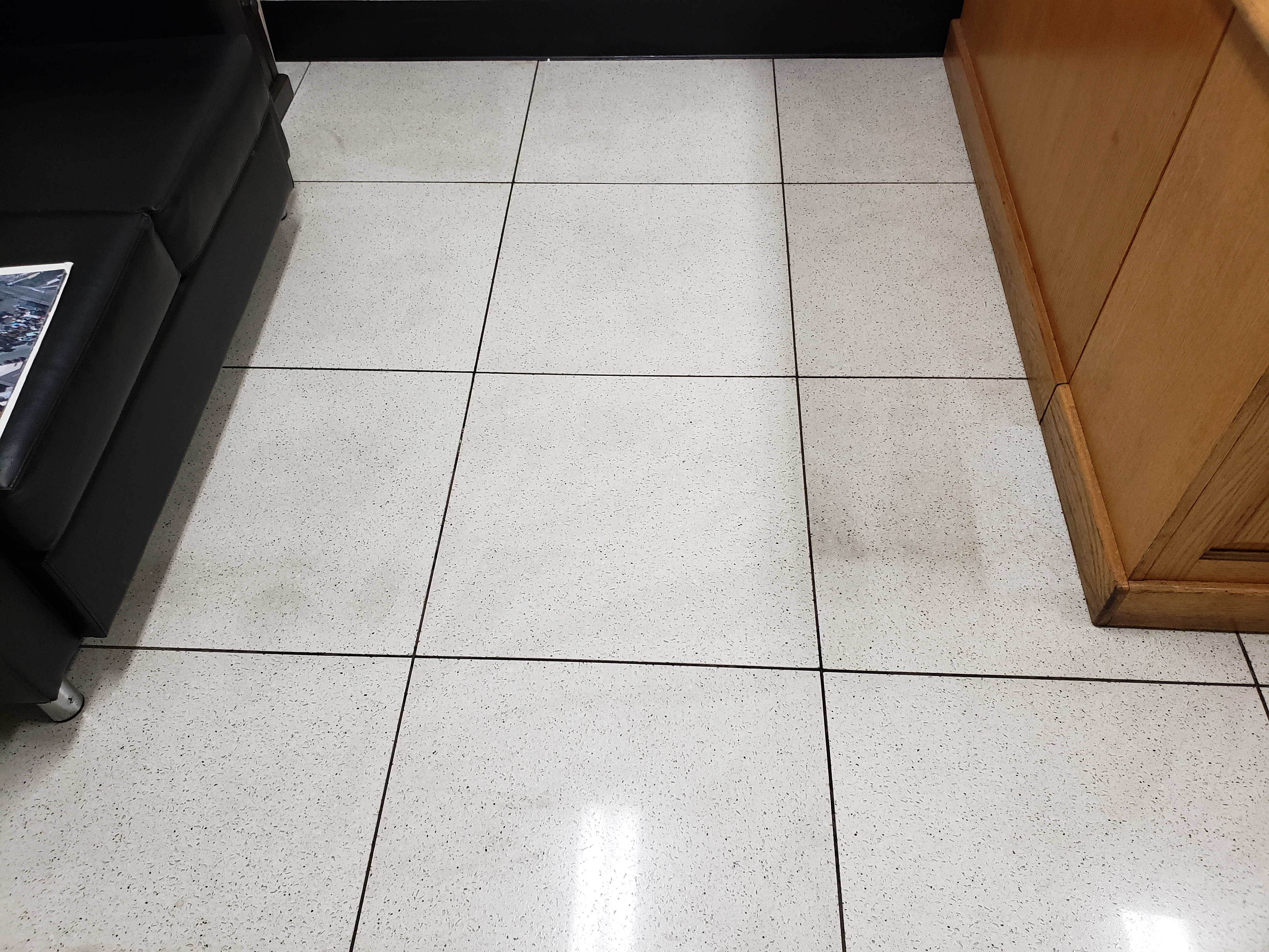 I have a janitorial account with a really strange floor. It's a chain tire store that tried this fancy new floor which claimed low maintenance costs and all that stuff... here is the link to their website. Some trendy(pub intended) "eco friendly" floor that costs way more than it's worth. Anyways it has been impossible to keep looking clean. Its "non porous" and you cant use anything abrasive to clean it, but it seems to absorb stuff and stain. So it's useless. But anyways it's like 2500sq ft so i didnt want to flood the place with acetone or bleach like they suggest for a deep clean. I had a melamine pad from my orbot vibe package. They call it the ultra lift pad or something. I tried a small spot and it didnt take any shine off, so i went for it today in an office. Worked amazing. Pictures dont do it justice, sorry. The pictures are all after mopping, so the dirt just usually doesn't come off. This helped a ton.