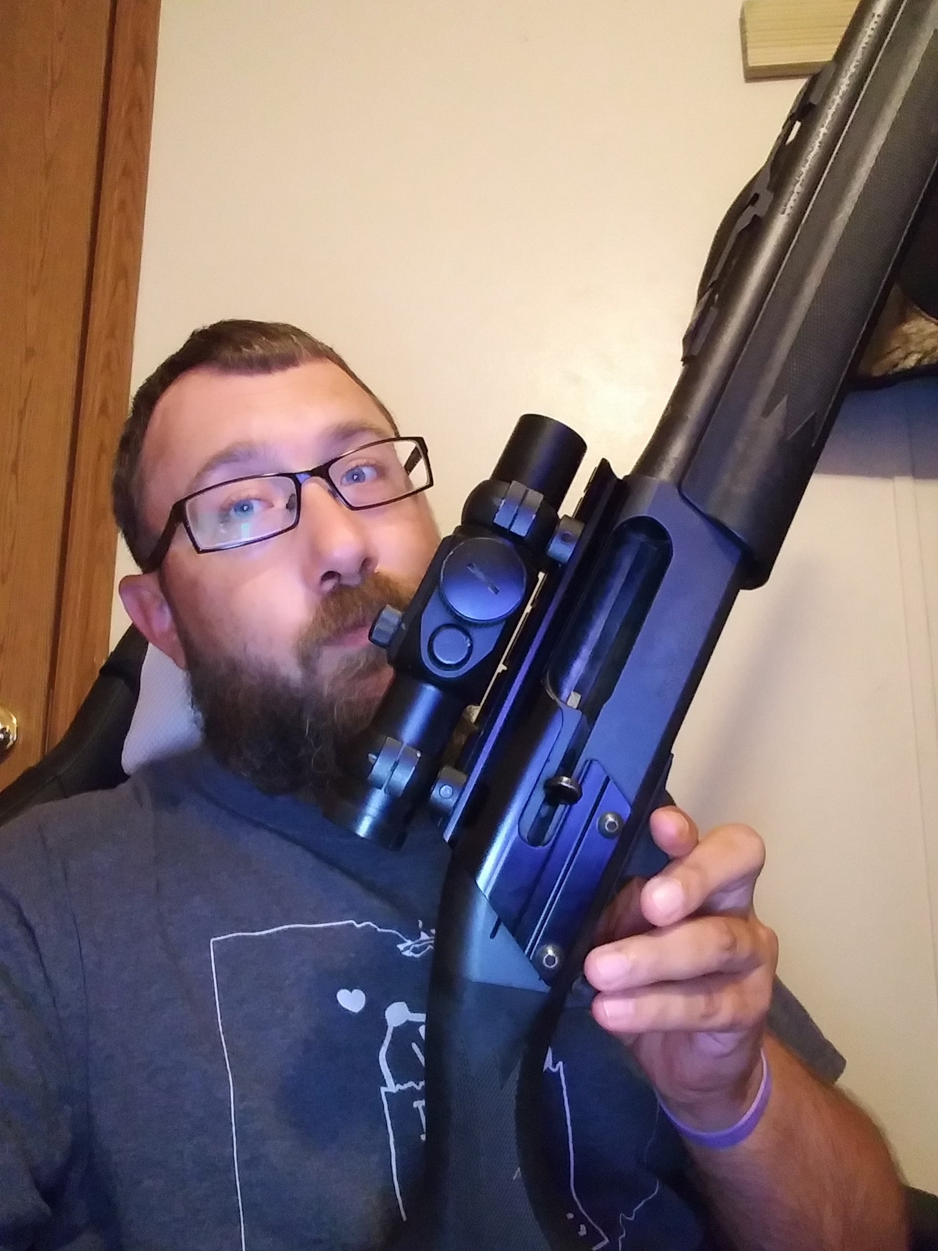 Up until recently, you couldn't use a rifle to hunt in Ohio so this was the alternative. It's just a red dot. But that's why I have the 12 and 20 870s for bird and clay shooting.