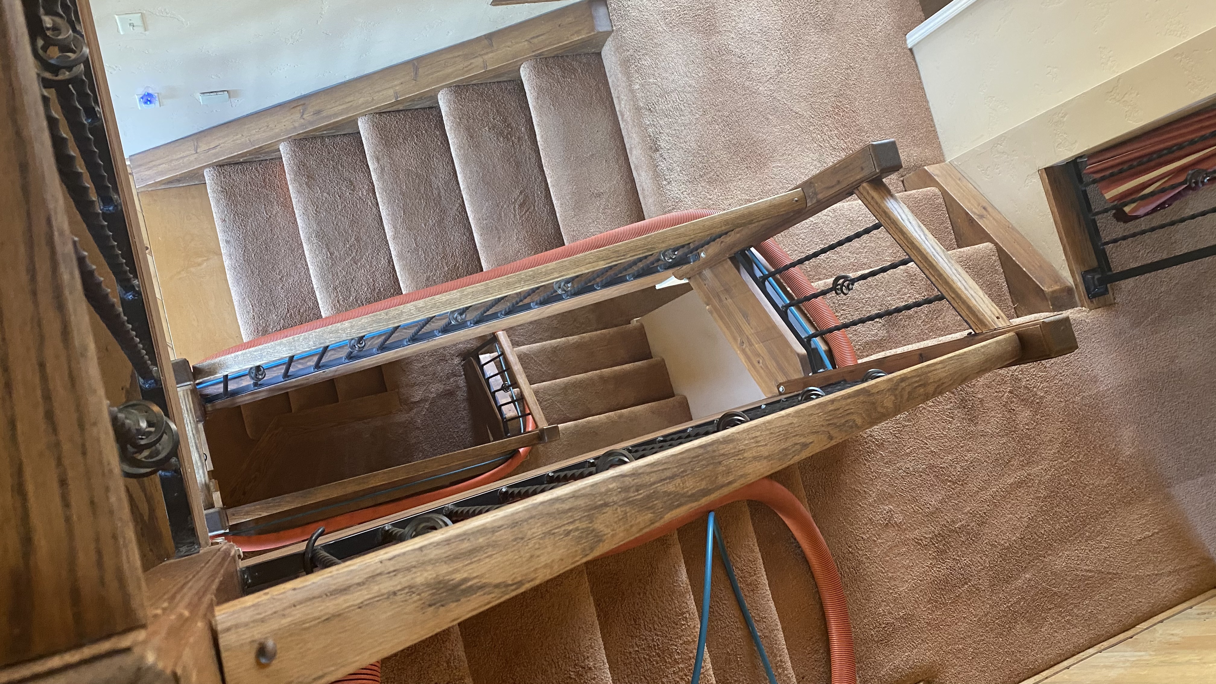 Can I ask why you didn't just drop the hose down the middle of the stairwell and bungee it to the metal on the railings?:headscratch::headscratch::headscratch: