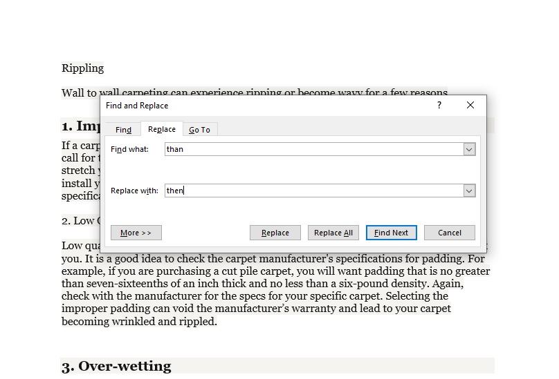 If a carpet is not stretched properly during installation. IICRC Installation Standards call for the installer to utilize a pole or power stretcher whenever possible. This will stretch your carpet from wall to wall. If your installer is only using the knee kicker to install your carpet, it is not going to be stretched enough to meet manufacturers’ specifications.2. Low Quality or Improper Padding