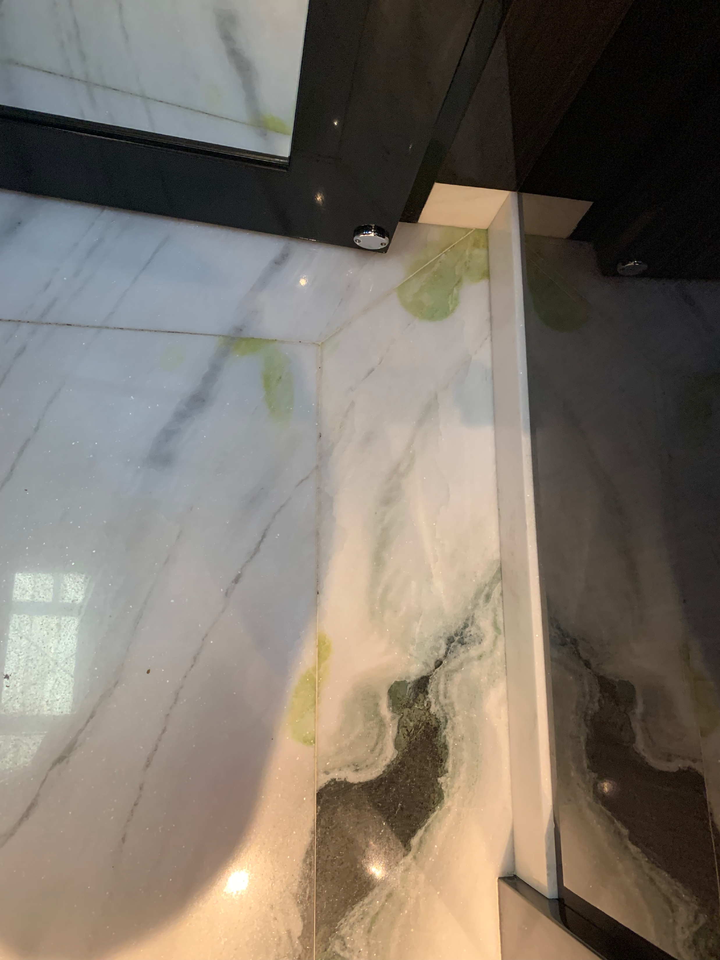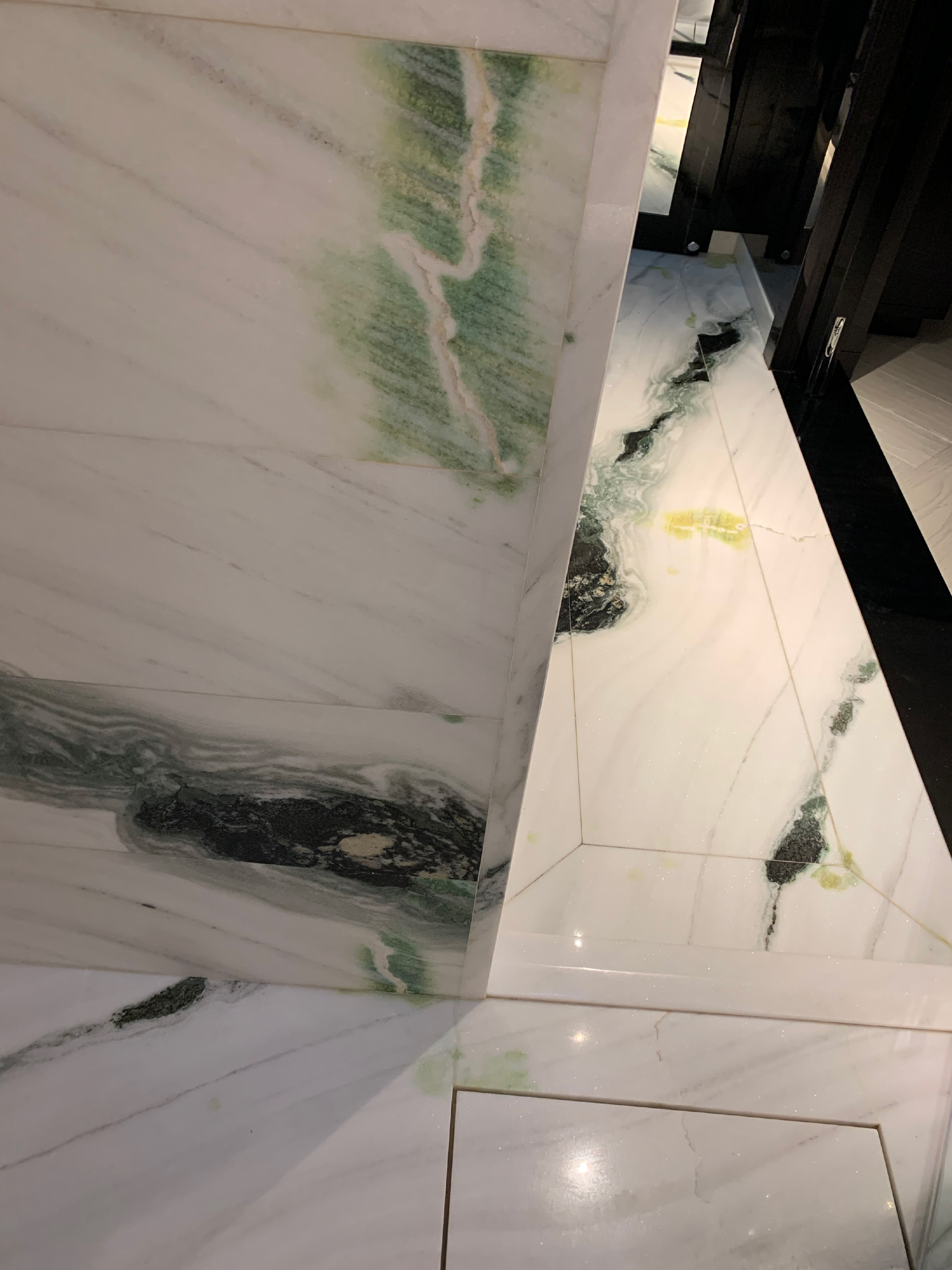 Could it be plant water at some time. Keep posting, cause I have quite a bit of marble in my churches, and am curious.