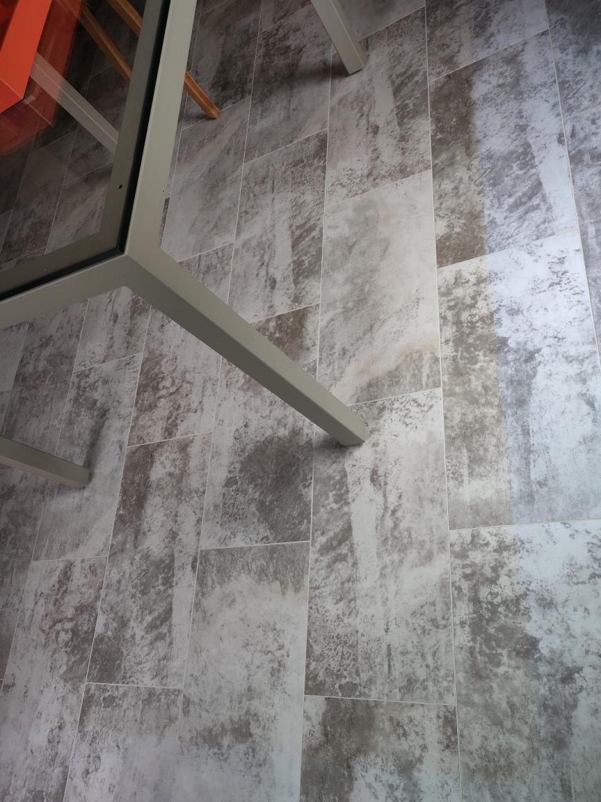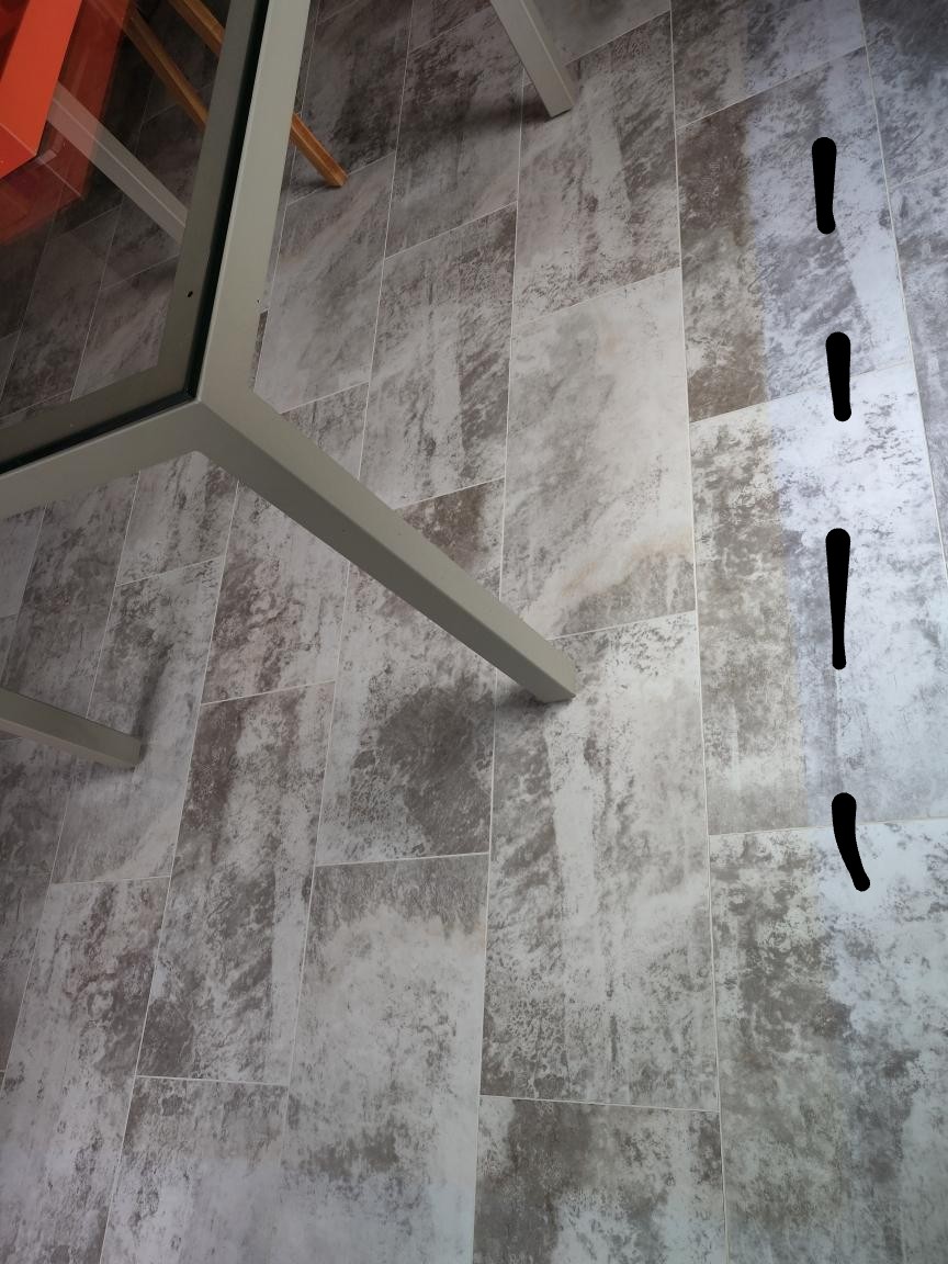 On second look at the picture it looks like it could be something they are cleaning the floor with causing a hazy look.