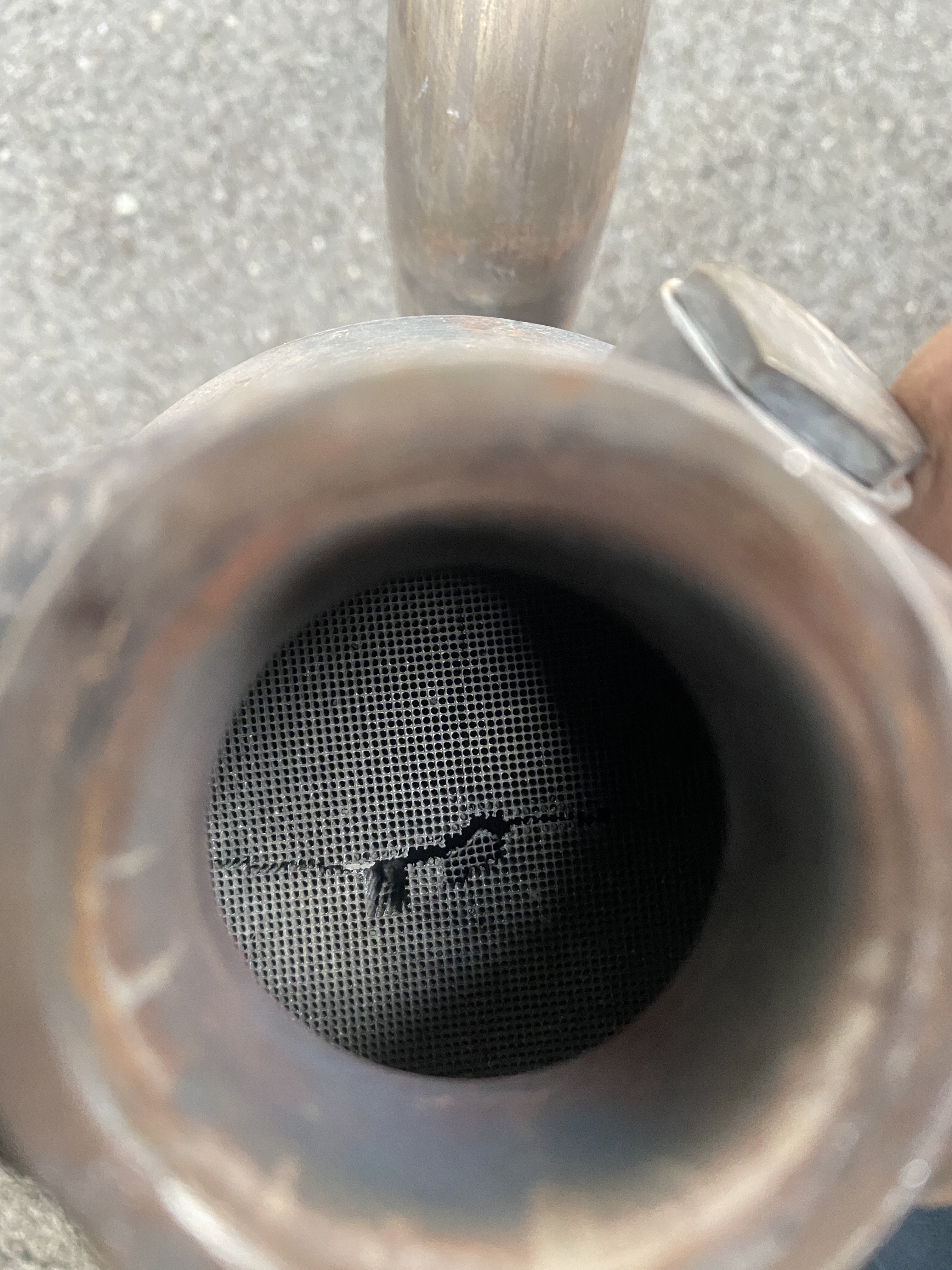 I put the old one I had back it has been hollowed out and basically not cat . I ran the machine ant at about 10-15 minutes it Boggs but the exhaust is not turning cherry red. I does run a little better but that’s probably because of less resistance. What would cause a cat to get damaged like that anyone have any ideas. I also ran a snake camera in both ends of that exhaust system from the bypass side and into the diverter valve and it all clear.