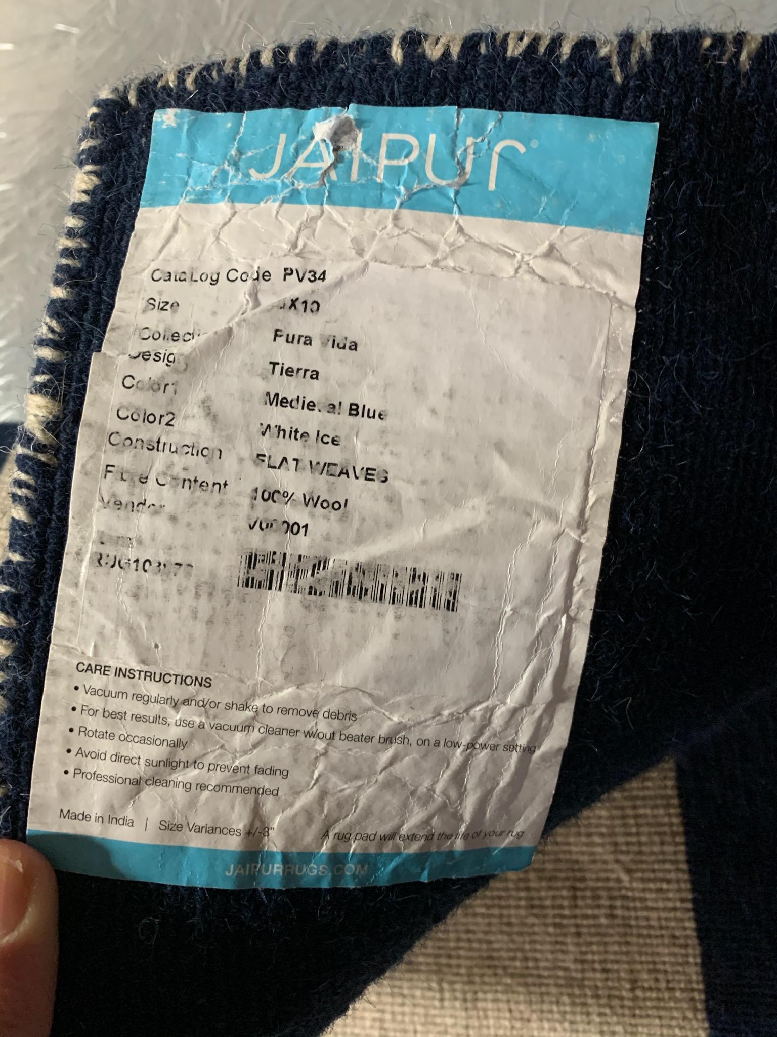 For $58, buy them a new one and say it came out great.Striped Pura Vida Wool Rug Blue White Pura Vida Tierra
