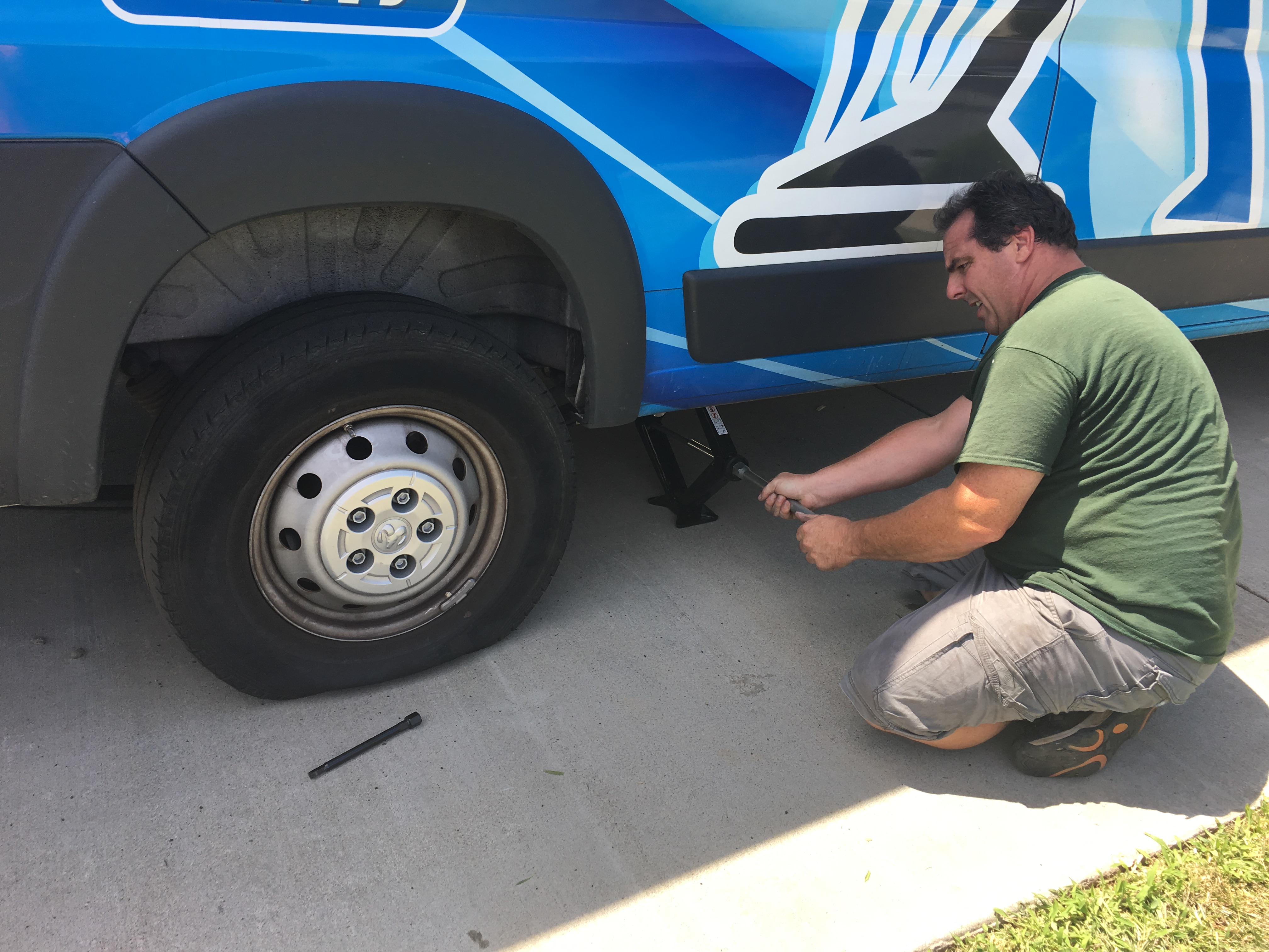 Mark, I had two nails in that tire. My son actually discovered it when we got to our second job. He heard the tire hissing. So i knew i was in trouble. It was going flat fast so i pulled out the jack and supported the van so it wouldn’t go to the ground. I then finished the carpet cleaning and when all the hoses were rolled up, went to work on the tire.