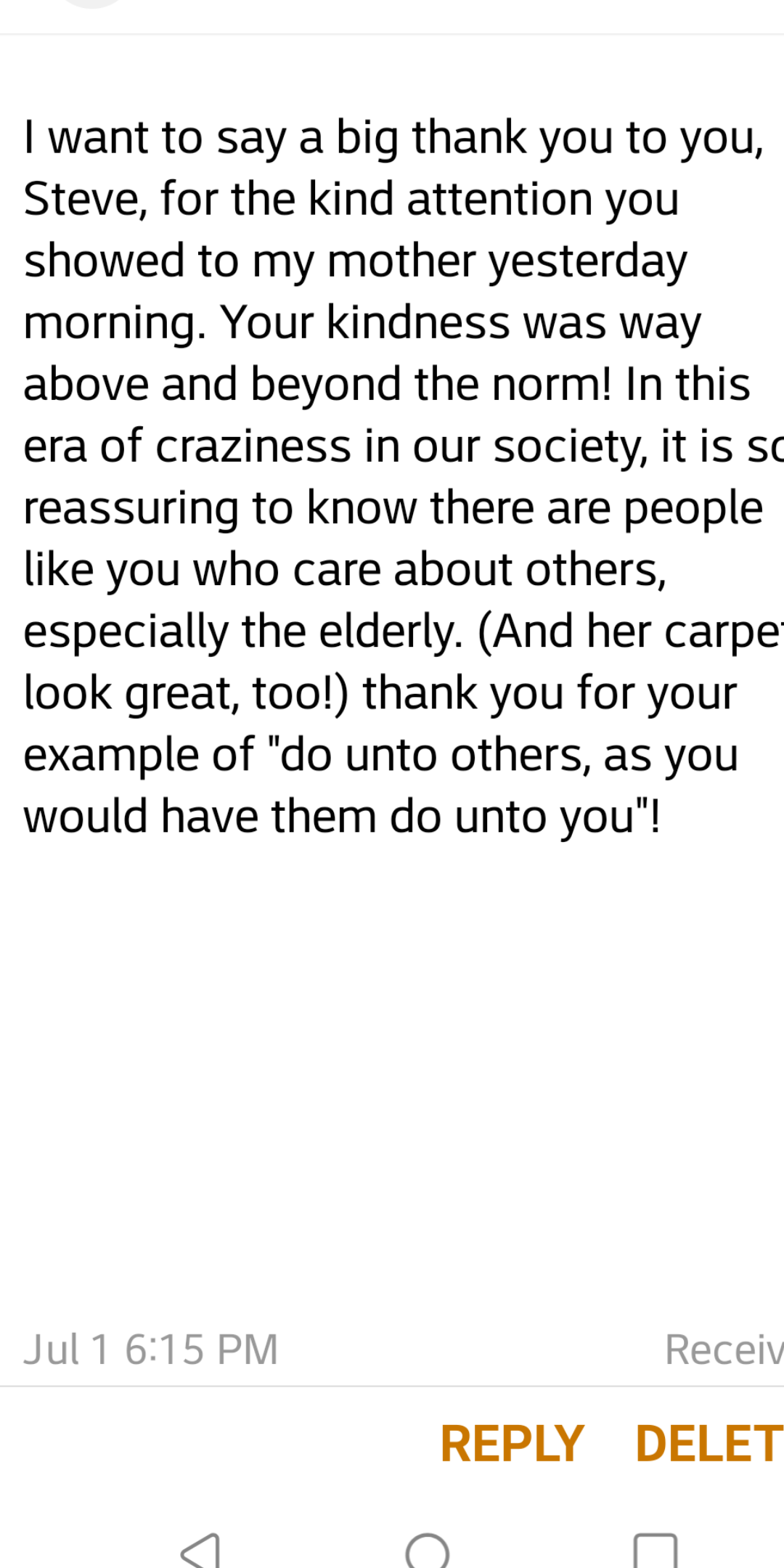 Tuesday job I thought I was going to have a Bawb story. Had to get my customer a cold towel and put her feet up for her. Checked on her one time and she was sleeping but thought she was dead.