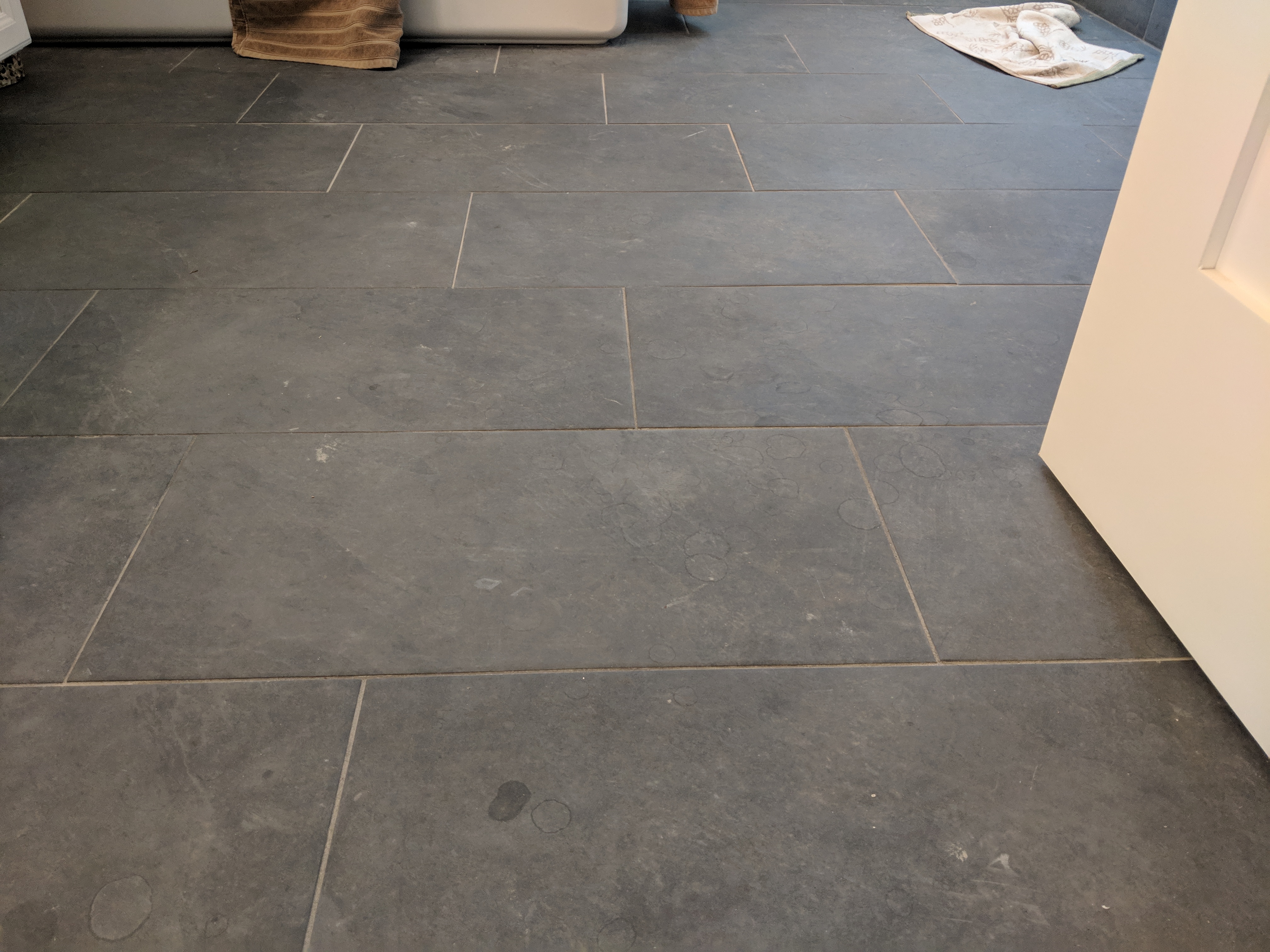 Also she has newly installed bathroom tile that has water spots that she can't clean. I thought it was a slate tile but the box says it porcelain. She wanted it cleaned and a sealer put on the tile. Can I use a mild acid on this and any suggestions for a sealer? I usually mop on Cobb's solvent sealer. Will that help with making the tile clean up on her end any easier?