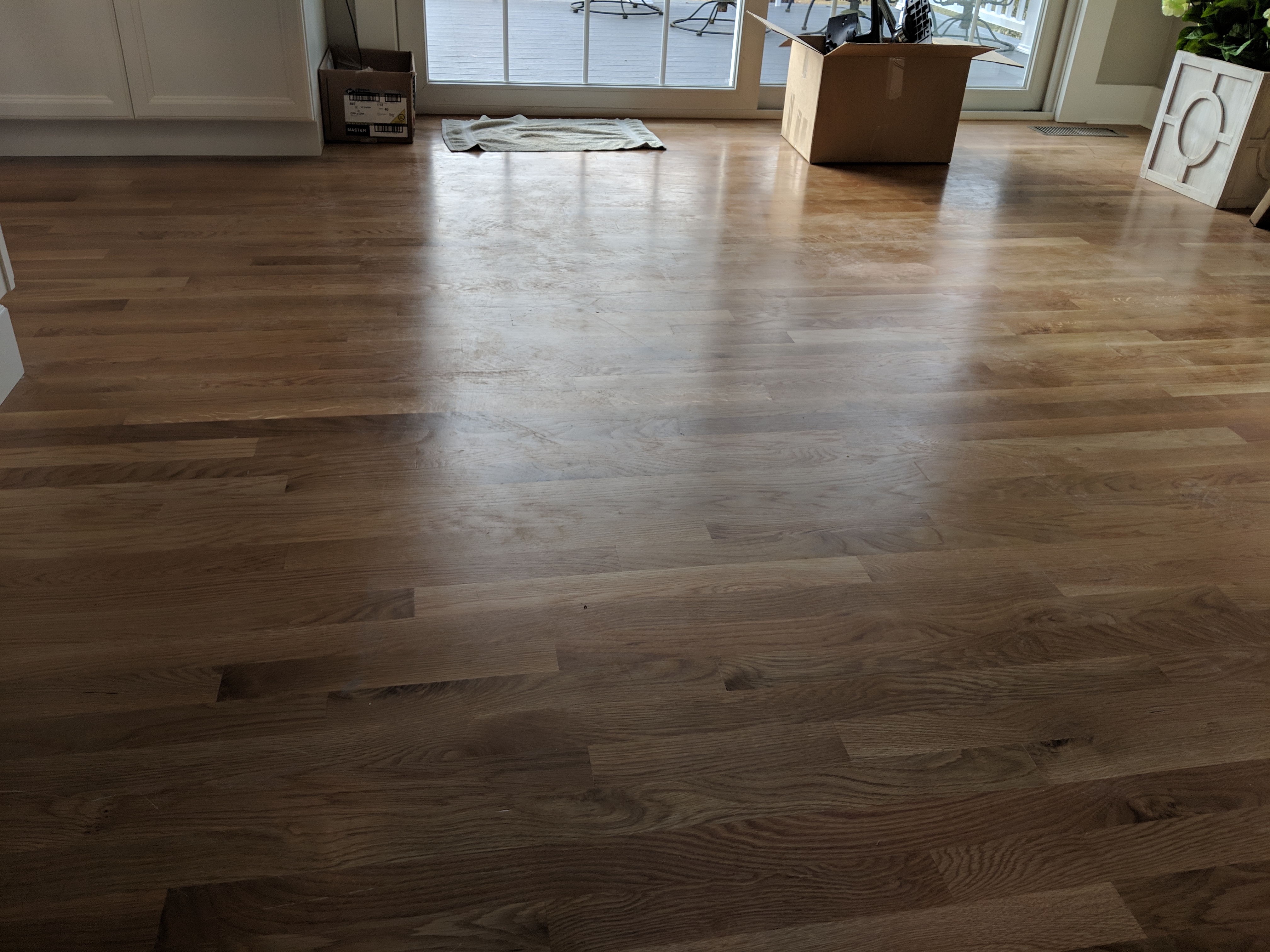 I have a customer that has a newly refinished wood floor. Construction dust was trampled on it only a few days after the floor was refinished. I told the customer that it needed more time for the finish to cure and that dust and sand might not be able to be cleaned out. I'm going there a second time for a demo before we commit to cleaning the whole thing. Ive just recently started cleaning wood and I've been using the basic coatings system. Would a red pad on my 175 be too much since now the finish is only a few weeks old? If I can get it cleaned would it be too soon to apply a finish to the floor?